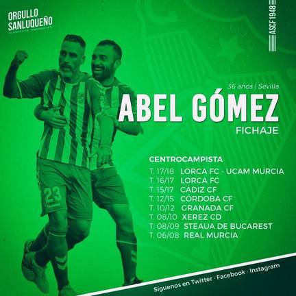 Si como dicen, la experiencia es un grado, el Atlético Sanluqueño se ha apuntado un tanto en el mercado de fichajes con la incorporación del centrocampista Abel Gómez, todo un habitual de nuestro balompié profesional. Aparte, el club se ha reforzado con Álex Cruz, un futbolista que ha jugado en todos los grupos de la Segunda División B.