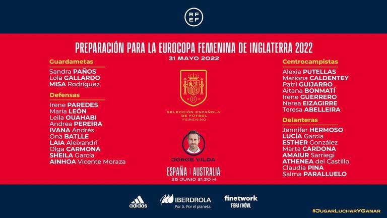 Y eso que Jorge Vilda ha citado a 28 futbolistas, por lo que tendrá que hacer cinco descartes. Ni tan siquiera que el Nuevo Colombino vaya a servir de escenario de un amistoso preparatorio el próximo 25 de junio ante Australia, ha hecho que el seleccionador se acordase de espartanas como Anita Marcos o Cinta Rodríguez.