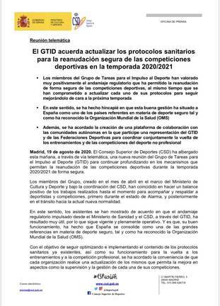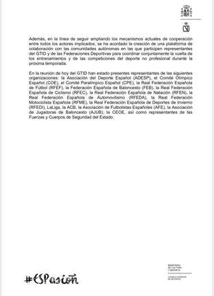 Todo lo que se ha acordado ha sido la "creación de una plataforma de colaboración para coordinar conjuntamente la vuelta a los entrenamientos (el Recre y otros equipos ya están entrenando y, en algunos casos, jugando amistosos) y de las competiciones del deporte no profesional durante la próxima temporada".