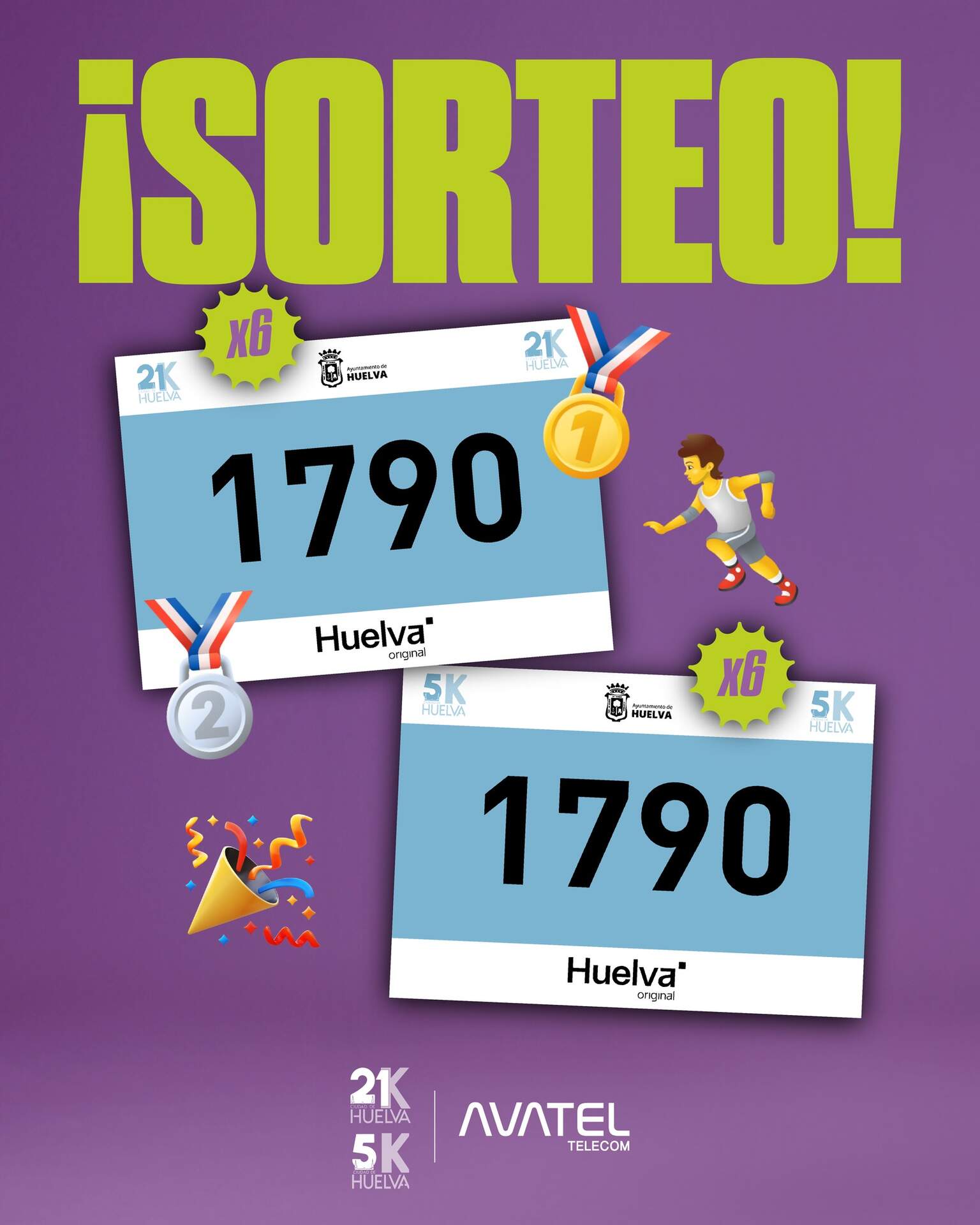 Avatel sortea seis dorsales para la 21k o 5k Ciudad de Huelva