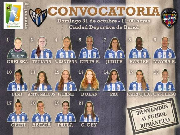 En cuanto a la convocatoria, causan baja la lesionada Stephannie Blanco y Leti, esta última afectada por una gastroenteritis. Por el contrario, entran en la citación Chini, una vez recuperada de su lesión, y la canterana Tatiana Barroso. Las internacionales Fatou Kanteh, Mayra Ramírez y Vanesa Santana han llegado a tiempo de jugar.
