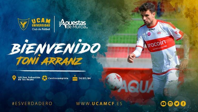 TONI ARRANZ (Madrid, 14/01/1994): Mediocentro de 24 años, que procede del San Sebastián de los Reyes, con el que ha jugado 35 partidos y marcado 2 goles esta última temporada. Formado en la cantera del Rayo Vallecano, llegó a jugar en el filial. El Rayo Majadahonda completa su currículo.