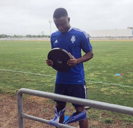 Anaba cautiva por su gran presencia física y su rapidez de movimientos en su estreno con el Recre. Si nada se tuerce, el africano debutará el próximo domingo en el Estadio Romano de Mérida.