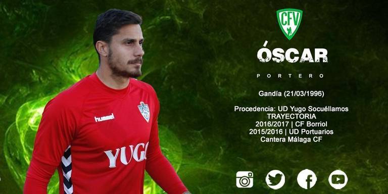 ÓSCAR EGEA (Gandía, Valencia; 21/03/1996): Portero de 22 años, procede del Yugo Socuéllamos y ocupará plaza de sub-23. Se formó en la cantera del Málaga y ha jugado en el Portuarios y Borriol. Debutará en la Segunda B.