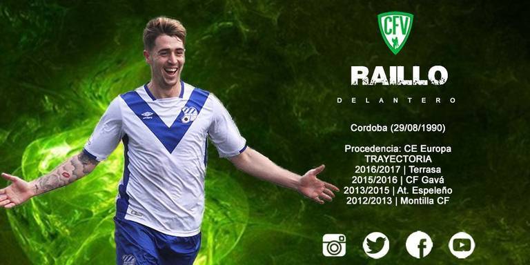 MANUEL RAILLO (Córdoba, 29/08/1990): Delantero de 27 años, procede del Europa de la Tercera División, con el que ha marcado 14 goles esta última temporada. Formado en la cantera del Séneca, ha jugado en el Lausanne-Sport, Montilla, Espeleño, Martinenc, Gavá y Terrassa. Debuta en Segunda B.