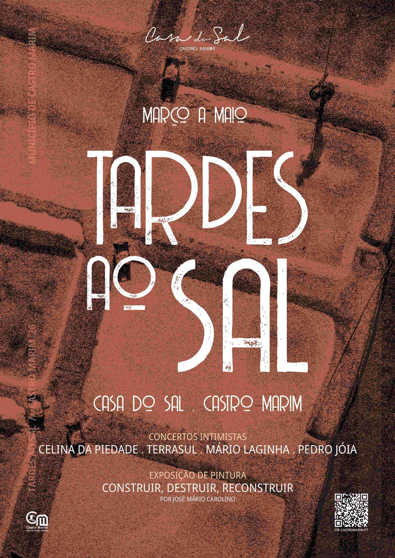 Esta iniciativa del Ayuntamiento de Castro Marim promueve momentos musicales que transitan entre diferentes lenguajes, desde sonidos tradicionales hasta jazz, e incluye también la exposición pictórica “Construir, Destruir, Reconstruir”, de José Mário Carolino.