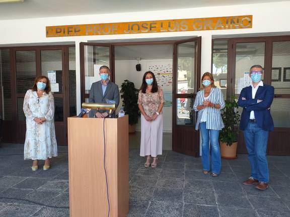La delegada territorial de Educación y Deporte en Huelva, Estela Villalba, acompañada del alcalde de Palos de la Frontera, Carmelo Romero, ha visitado hoy el Centro Público Integrado de Formación Profesional Profesor José Luis Graiño. Allí ha detallado la oferta de Formación Profesional en la provincia para el curso 20/21, que asciende a un total de 8.269 plazas de nuevo ingreso.