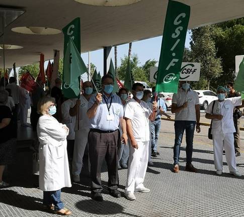 El sindicato CSIF, junto con CC OO y UGT, ha protagonizado una concentración de protesta en el hospital Juan Ramón Jiménez para exigir al Servicio Andaluz de Salud (SAS) que negocie la carrera profesional para todos sus trabajadores.