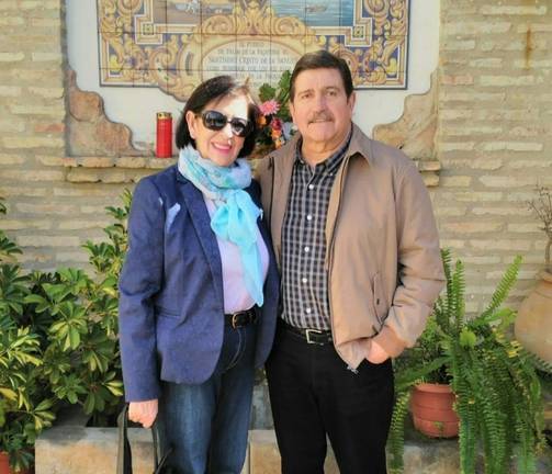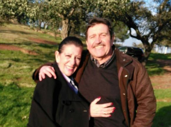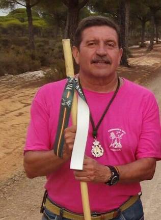 Cuando me manda las fotografías que le solicito, recuerda el camino del Rocío de la Guardia Civil, que realizó íntegro a pie en dos jornadas en 2015. Y en otra imagen que está en el campo con su mujer, en San Bartomomé de la Torre; a las que les tiene un especial cariño.