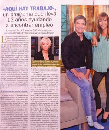 En 1997 llega a la que hoy en día es su casa, RTVE. Desde entonces, ha sido Subdirectora de “Empléate a Fondo” y de “Aquí Hay Trabajo”; programa que dirige desde el año 2007.