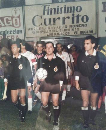 R. - Muchísimos. Dediqué 24 años de mi vida al arbitraje. No llegué a la máxima categoría, aunque si como juez de línea. Casualmente estuve con Abilio Caetano Bueno, único árbitro de Huelva en primera división. Mi juventud, parte de ella estuve arbitrando, desde sexto de Bachiller, empecé con los benjamines hasta primera división, estuve en todas las categorías aunque como he referido antes, en la división de honor lo hice como linier. Como árbitro hasta tercera división. Tuve la categoría de árbitro nacional y la verdad es una experiencia como para escribir un libro. La de aficionados, árbitros y jugadores que he conocido, con vivencias que nunca podré olvidar habiendo hecho miles de kilómetros para arbitrar. Conocí a José Emilio Guruceta Muro, el mítico Guruceta, un gran árbitro que desgraciadamente falleció en un accidente de tráfico cuando se dirigía a Burgos para dirigir un partido de fútbol.