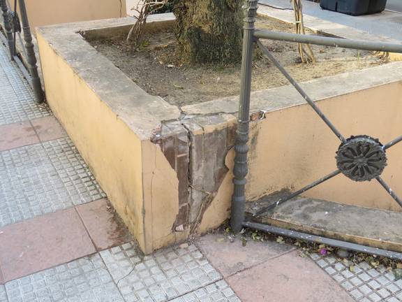 - La Plaza de la Merced tiene roturas del acerado o los muros muy abundantes sin que a día de hoy se haya visto siquiera una mínima reparación, quitando las “chapuzas”.