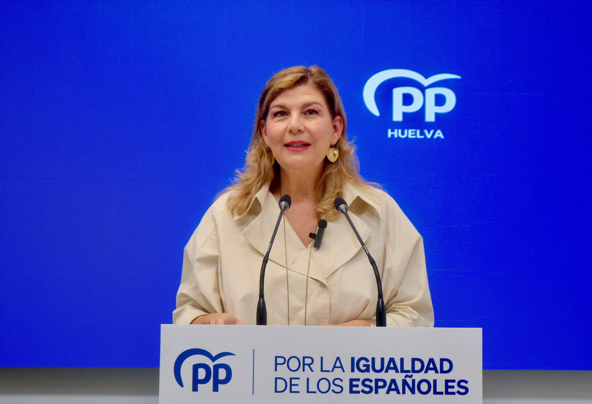 La secretaria general del PP onubense, Berta Centeno, denuncia que el Ejecutivo central “no cumple con la provincia” y “solo pone freno al progreso de la agricultura, la industria y el abastecimiento de agua”.