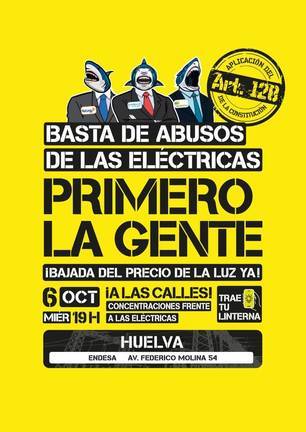 Por su parte, el portavoz provincial de Podemos en Huelva, Hermes Gómez, ha explicado que “la movilización social para exigir a las compañías eléctricas que dejen de abusar de su posición de privilegio, encareciendo la luz en perjuicio de toda la sociedad, tiene que convertirse en una herramienta que sirva para acabar con esta enorme injusticia y cambiar las actuales condiciones del mercado energético”.