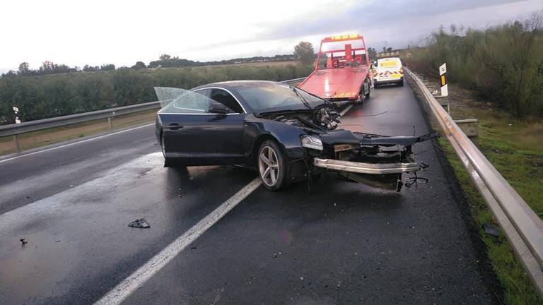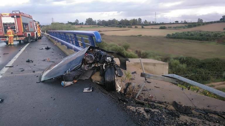 Aparatoso accidente en la autovía A-49 Huelva-Sevilla con dos heridos