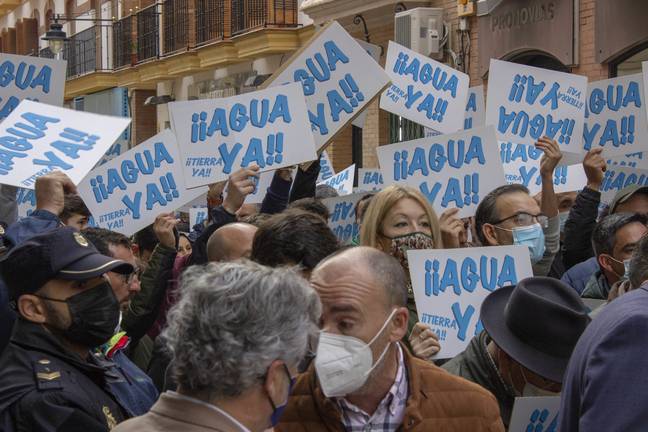 El presidente de la Plataforma, Romualdo Macías, ha insistido en que “los agricultores hemos salido a la calle para transmitirle nuestro pesar y nuestro temor tras ver como su partido, el Gobierno central, no ha movido ni una ficha de las disponibles para hacer posible la llegada del agua superficial al Condado. Y no ahora, sino desde hace muchas décadas”.