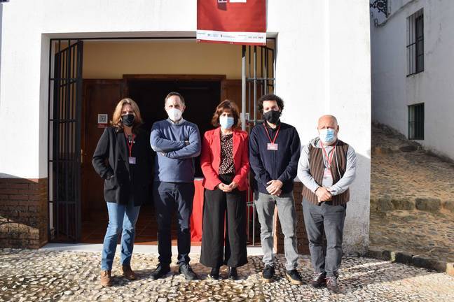 Almonaster la Real acoge este fin de semana la primera edición de 'FestComarcas Photo20', un innovador y ambicioso proyecto de fomento y exhibición de las artes visuales, puesto en marcha por la Diputación de Huelva. A la inauguración han asistido la diputada Silvia Durán, el alcalde del municipio, Jacinto Vázquez, y el representante de la productora del evento, We are photo, Juan Luis Rod.