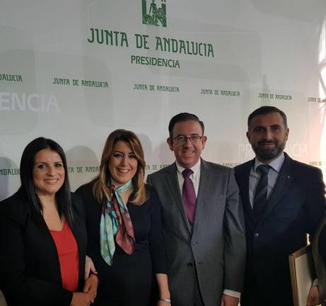 La alcaldesa, Rocío Espinosa, firma la adhesión en un acto presidido por la presidenta de la Junta de Andalucía