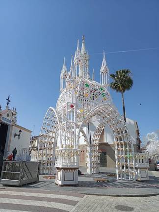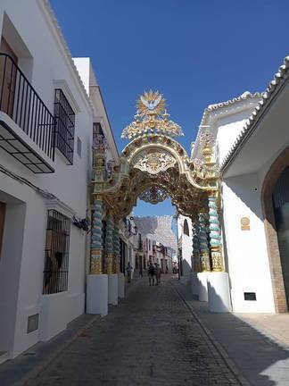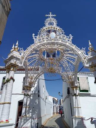 Recorrer en estos días Almonte es deleitarse con flores de papel, arcos donde el blanco rezuma y simboliza la pureza de María, mientras que las bóvedas efímeras evocan las mejores catedrales europeas aderezadas con la profusión de los detalles que hace únicos ese itinerario que recorrerá la patrona almonteña.