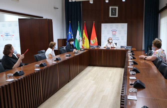 La alcaldesa de Cartaya, Pepa González Bayo, y la concejala de Obras y Servicios y Colectivos Sociales, Consolación Benítez, se han reunido hoy en el Salón de Plenos con una amplia representación de la Asociación de Amas de Casa ‘Reina Sofía’ de la localidad, “para conocer de primera mano las necesidades del colectivo y estrechar lazos de colaboración y participación con el mismo”.