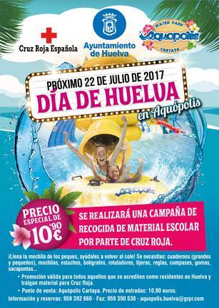 Durante esta jornada, Aquópolis Cartaya también se va a llevar a cabo junto a Cruz Roja una campaña solidaria de recogida de material escolar