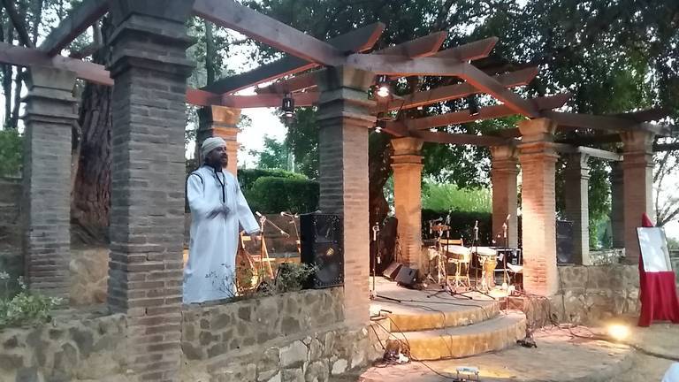 El concierto de música andalusí, que generalmente inaugura la Muestra en la torre del Castillo, este año tuvo lugar en el Parque Municipal Arias Montano y estuvo precedido por la contextualización histórica del Festival del Territorio Hospitalario, a través de la recreación y recitación de versos del rey poeta Al-Mutamid, que narró el pasado andalusí de Aracena.