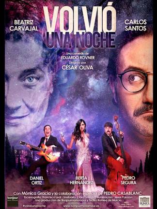 El Teatro Sierra de Aracena acogerá el próximo día 29 de febrero a las 20:30 h 'Volvió una noche', comedia original del argentino Eduardo Rovner, protagonizada por Beatriz Carvajal y Carlos Santos bajo dirección de César Oliva. El reparto lo completan Daniel Ortiz, Berta Hernández, Pedro Segura y Mónica Gracia.