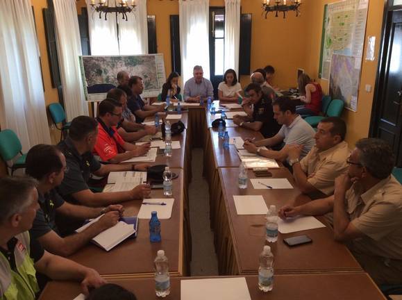 y la concejala - delegada de El Rocío, Macarena Robles, han presidido la reunión de seguimiento, planificación y evaluación del Plan Aldea que ha tenido lugar esta mañana en el Centro de Coordinación Operativa Integrada de El Rocío.