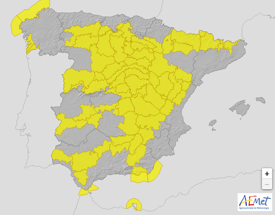 La Agencia Estatal de Meteorología ha activado a las 12 horas del mediodía de este domingo hasta las 20 horas.