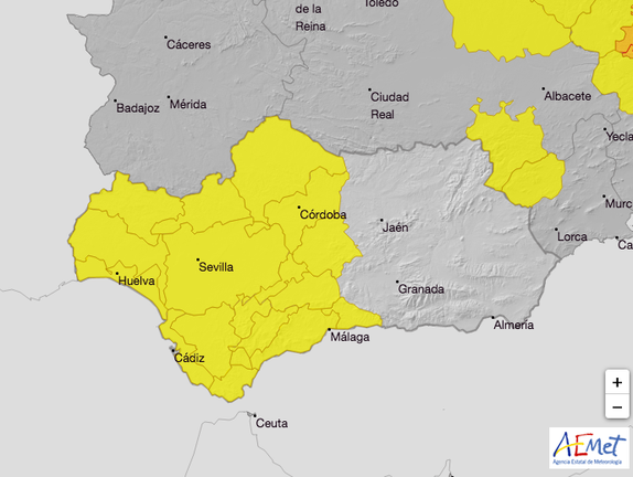 Así, desde las 12 horas hasta las 23.59 horas de este miércoles, Huelva estará en aviso amarillo por fuertes lluvias en todo su territorio. Asimismo, en la jornada del jueves se ampliará el aviso amarillo durante todo el día por alto riesgo de fuertes chubascos.