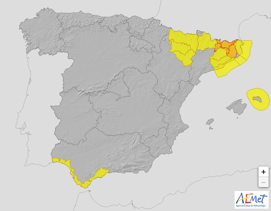 El aviso está comprendido en el tramo horario de las 00.00 horas de este jueves hasta las 23.59 horas del mismo. Posteriormente, el viernes, el aviso amarillo desaparece de la costa y de toda la provincia, alejándose hacia el este de la península.