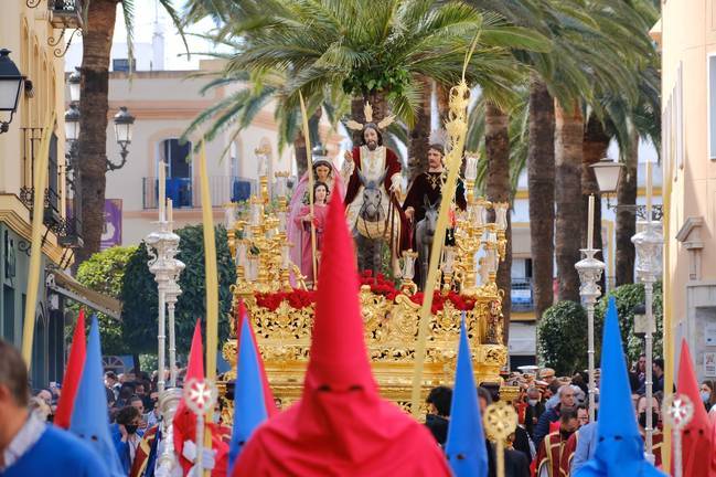 Tras dos años sin poder hacerlo, Ayamonte ha disfrutado de una intensa y brillante mañana del Domingo de Ramos en el que el Señor Triunfante en su Entrada en Jerusalén (para los ayamontinos “el Señor de La Mulita”) recorrió las calles de la ciudad en la procesión de gloria de la Hermandad del Señor Triunfante en su Entrada en Jerusalem, Cristo del Amor y Nuestra Señora de la Salud.