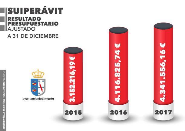 Pero éste no es el único aspecto positivo que arroja el documento relativo al Presupuesto del año pasado. Además de reducir en los términos citados el remanente de tesorería negativo, la liquidación atestigua también una mejora del resultado presupuestario (superávit), que se sitúa en 4,34 millones de euros, un 37,77 por ciento más que el resultado presupuestario con el que el Ayuntamiento cerró el 2015, que era de 3,15 millones de euros.