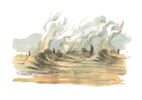 Pie de foto: Ilustraciones de Pandelet para la obra 1888. El año de los tiros, de Rafael Moreno.