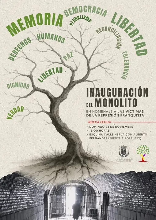 El Ayuntamiento de Bollullos Par del Condado, a través de su Concejalía de Cultura, celebrará el próximo domingo 23 de noviembre a las 16:00 horas la inauguración de un monolito en homenaje a las víctimas de la represión franquista, en el marco de la programación del Otoño Cultural 2025.