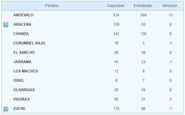 Las últimas lluvias caídas tras el paso de 'Daniel' apenas se han dejado notar en los pantanos. Aroche recogió 33 litros por metro cuadrado en 24 horas y Huelva capital 17. Cifras aun muy bajas para el momento hidrológico actual.