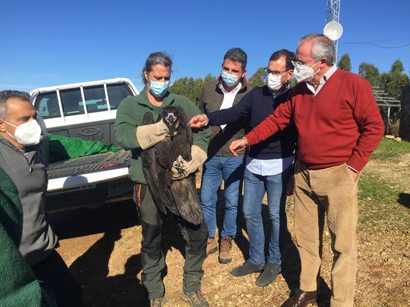 El director general de Medio Natural, Ángel Sánchez, ha participado de la liberación de un buitre negro (Aegypius monachus) en el pico montañoso El Alto de Sierra Pelada, dentro del Paraje Natural Sierra Pelada y Rivera del Aserrador (Huelva). El ejemplar, cuya especie está considerada 'vulnerable' en del Catálogo Andaluz de Especies Amenazadas, fue alimentado en el Centro de Recuperación de Especies Amenazadas (CREA) de Marismas del Odiel después de ser encontrado desorientado fuera de su hábitat, probablemente por su edad juvenil --menos de un año--.