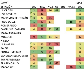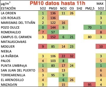 Lo bueno es que en esta jornada no hubo impacto de SO2 industrial, excepto en la zona portuaria de Torrearenilla.