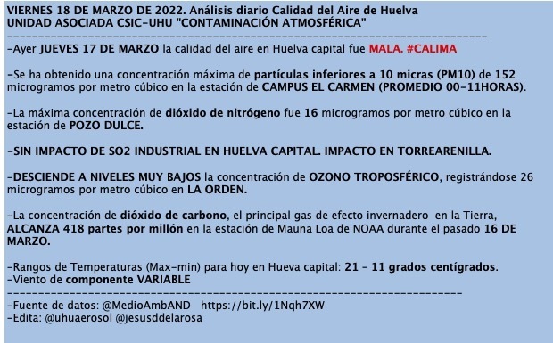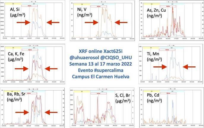 Fue el pasado miércoles cuando se superaron valores históricos, que son más bien inéditos. Este aire extremadamente desfavorable puso los valores en una cima peligrosa para la salud: µg/m3: Si=36; Al=18; Ca=13; Fe= 9.2; K=3.1. O lo que es lo mismo respiramos partículas de silicio, aluminio, calcio, hierro y potasio, un cóctel explosivo.