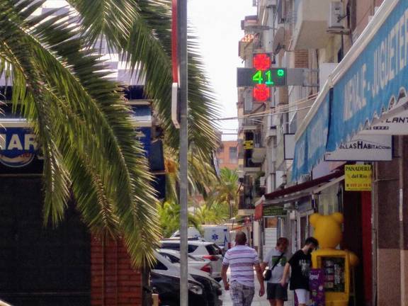 Y los termómetros que están colocados al sol han marcado nada menos que 46º. Sirva como ejemplo el que está colocado frente a la Plaza de Toros de La Merced. A mediodía mostraba un registro que asustaba al mirarlo.