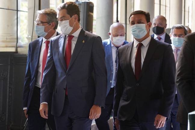 El presidente de la Junta de Andalucía, Juanma Moreno, ha afirmado que sólo desde la cooperación y el diálogo leal y sincero entre las administraciones se puede encarar el reto de superar la pandemia de la Covid-19 y reconstruir Andalucía, al mismo tiempo que ha apelado a la necesidad de que todas ellas se coordinen y se planifiquen de forma conjunta con sentido común, con lealtad institucional y con absoluta transparencia en el flujo de la información.