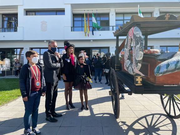 Sobre las once de la mañana llegaban al Ayuntamiento de Isla Cristina, donde tras muchos año de espera, volvía a tener lugar la recepción oficial de la Corporación Municipal, presidida por el alcalde, Jenaro Orta y la concejala de Festejos, María del Carmen Beltrán, a la que se unían las niñas y niños los niños del CLIA, que visitaban en ese momento el edificio consistorial, así como la Reina y su Corte de Honor y los usuarios y usuarias de Asidem, ataviados con los coloridos disfraces de ‘viudas alegres’ para la ocasión.