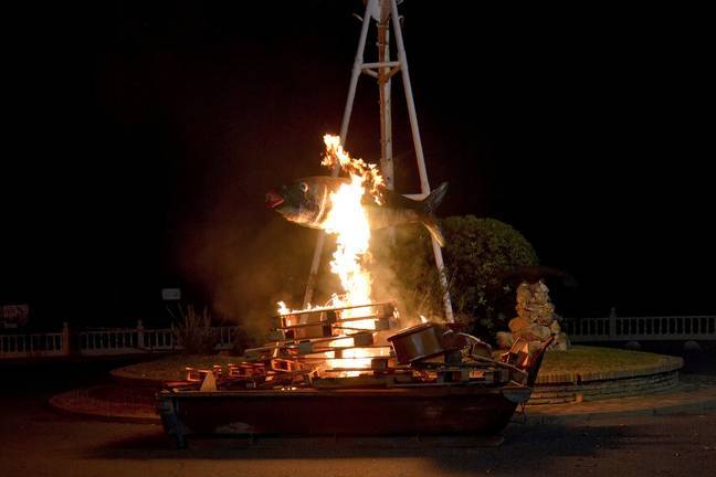 Ya por la tarde-noche, una marea de viudas alegres, con originales tocados y disfraces volvía a tomar las calles del centro para acompañar a la sardina que un año más sería quemada como manda la tradición.