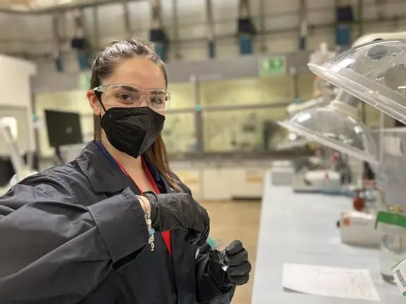 Lourdes Palacios es una de las alumnas en prácticas que ha comenzado su formación en el laboratorio del Parque Energético La Rábida de Cepsa. El modelo FP Dual da la oportunidad a los alumnos de intercalar el aprendizaje en el mundo empresarial al mismo tiempo que el reglado en sus institutos.