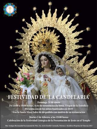 Ya el martes día 2, a las 19:00 horas, se celebrará la Santa Misa en la Festividad de la Presentación Litúrgica de la Presentación de Jesús en el Templo y la Purificación de Nuestra Señora, que este año no podrá contar con la procesión de candelas, y se tendrá que cumplir las medidas sanitarias. La celebración estará presidida por el sacerdote hijo de la Villa Antonio Ismael Gutiérrez Vera.