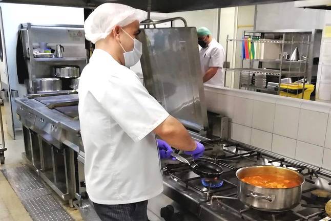 Desde que el proveedor llega a la cocina se sigue un protocolo seguro para la descontaminación: entrada del producto, limpieza del mismo y cocina. "Siempre con el aprobado previo para garantizar la seguridad de todo el equipo y de los propios pacientes (bajo una declaración jurada del proveedor de que no ha pasado la enfermedad o ha estado con personas que la hayan pasado)", ha explicado Marcos.