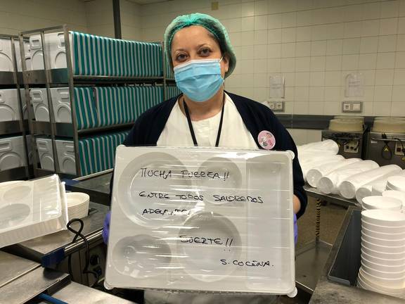 Los profesionales de la cocina (alrededor de 100 personas) han visto su trabajo reconocido en este estado de alarma. "La solidaridad, el cariño y el reconocimiento nos han llegado desde todas las áreas: pacientes, ciudadanía y empresas, así como nuestros compañeros médicos y enfermeros del hospital".