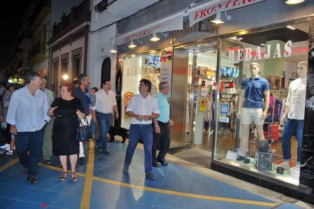 Los bailes dieron paso al acto institucional del corte de la cinta en pleno paseo. Presidido por la alcaldesa isleña, Antonia Grao, acompañada del primer Teniente de Alcalde, Francisco González y el responsable de la iniciativa, el Delegado de Comercio e Industrial, Carlos Guarch, quienes posteriormente realizaron declaraciones para los medios de comunicación presentes.
