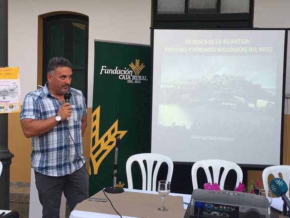 Una interesante disertación que dio paso a la conferencia del catedrático de Geología de la Universidad de Huelva e investigador Juan Antonio Morales González, que hizo una disertación sobre la ‘Atlántida en Huelva, ficciones y realidades del mito’. La conferencia de Morales, que fue muy aplaudida, hizo un recorrido por los trabajos desarrollados con su compañero Claudio Lozano para difundir las investigaciones que realizaron en la Costa de Chipiona (Cádiz) entre julio y septiembre de 2010 con motivo del documental rodado por la productora de James Cameron y emitido en 2011 por National Geographic Channel.