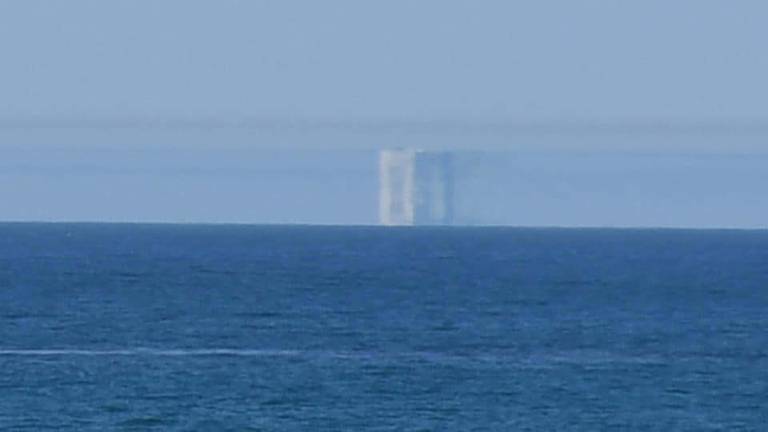 Se trata de un espejismo marino, en este caso captado por Urbanización Playa de Matalascañas que simula en el horizonte la visión de enormes bloques de hormigón parecidos a edificios.